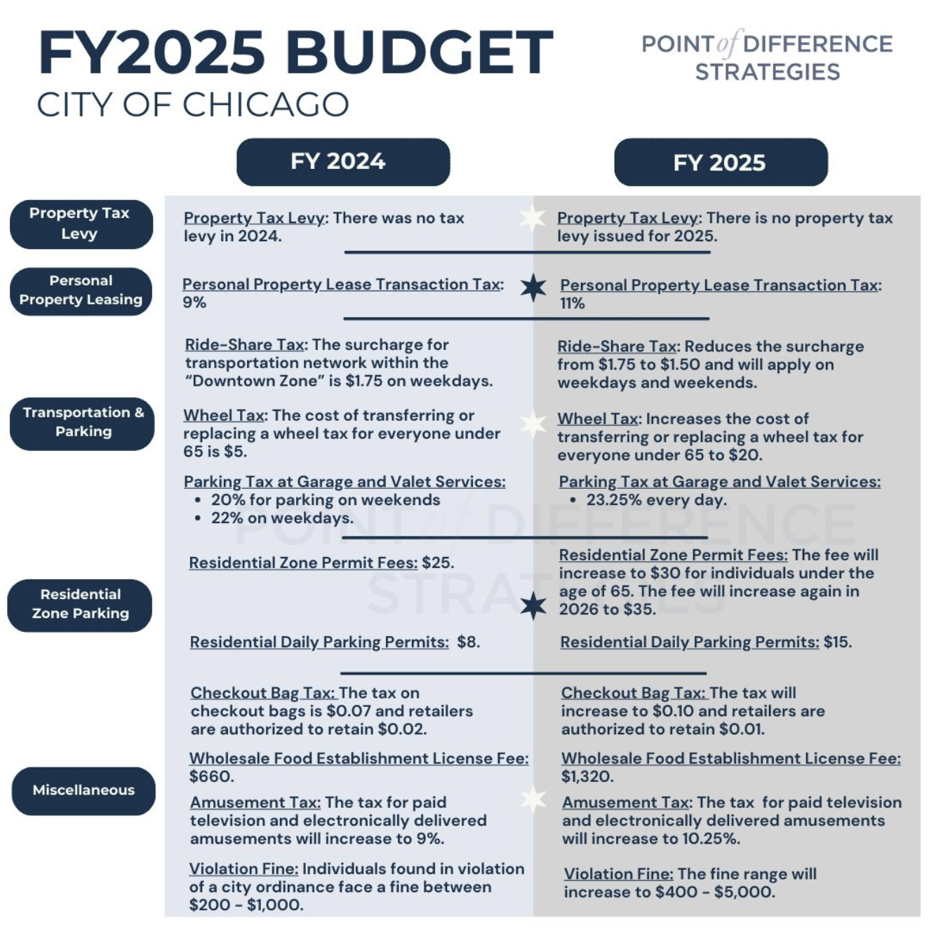 For quick reference, here are a few highlights of the fines and fees proposed for FY2025 in comparison to the ones set in FY2024.
